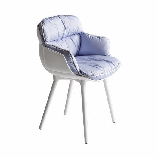 Comfortable armchairs for indoor and out, composed by a techno polymer shell with soft slim line goose feather cushion.
