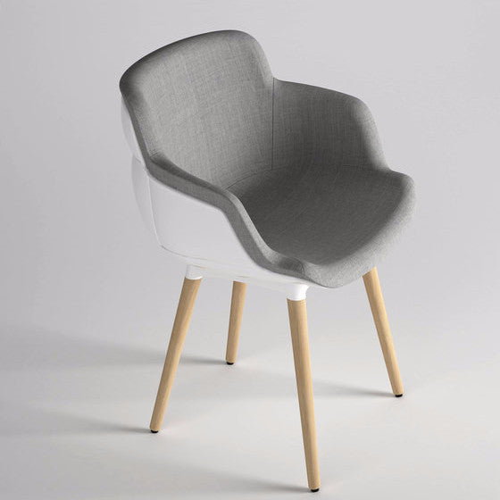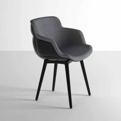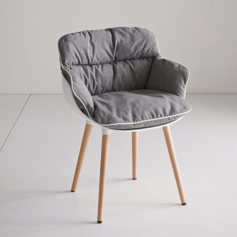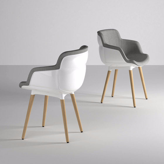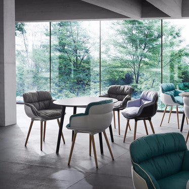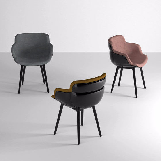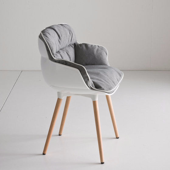 Choppy “Sleek” is an armchair for indoor and outdoor, composed by an injection-molded polypropylene shell and the hard foam pillow in front, which is fixed to the structure throught some clips patented by the company Gaber. There are a variety of bases that can be used for the shell: from metal frames to four wooden legs, as well as various other options depending on its intended us.